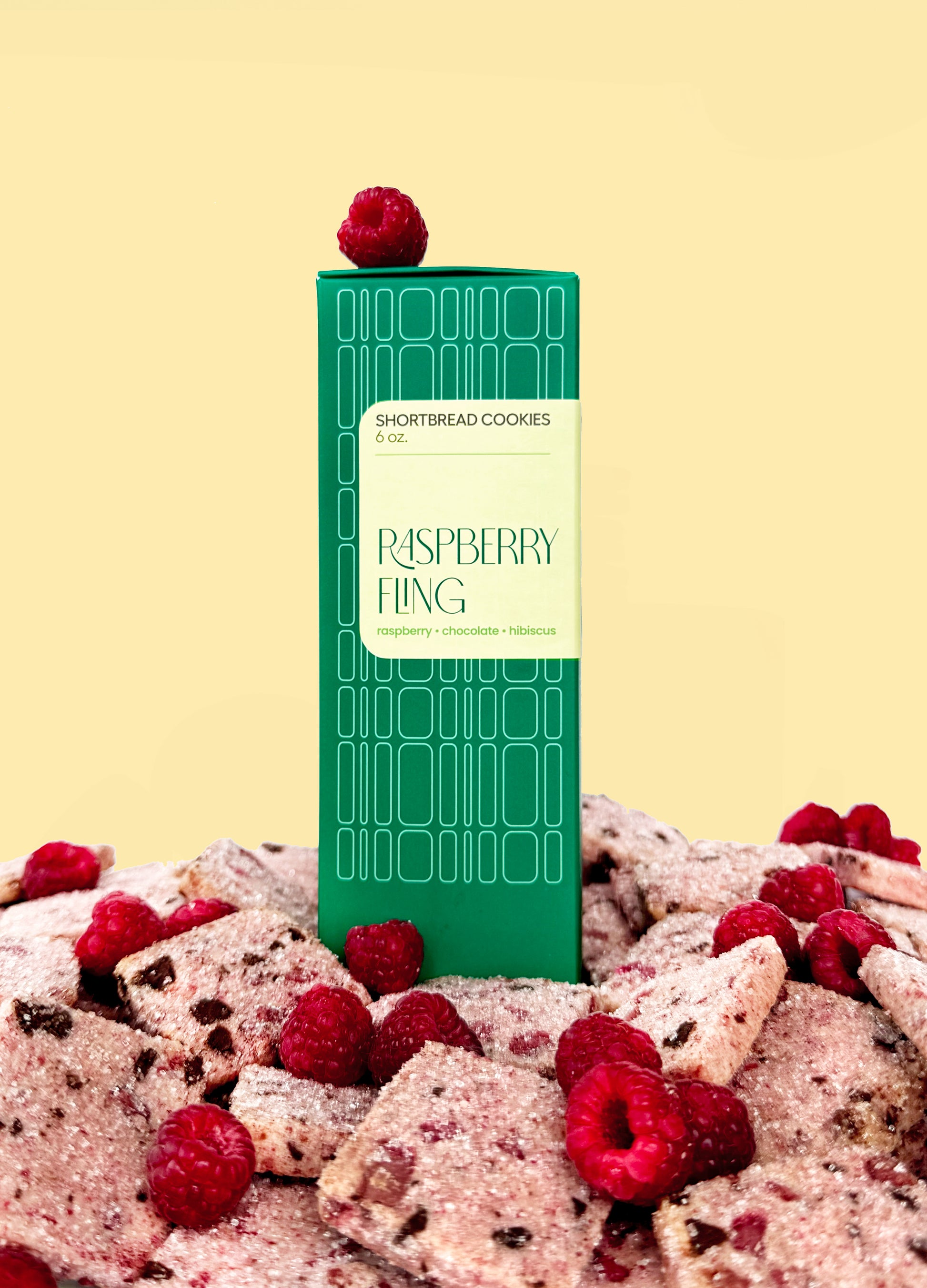 Ingredients: Flour (unbleached wheat flour, malted barley flour), Butter, Powdered sugar (sugar, cornstarch), Raspberry chocolate (Sugar, cocoa butter, raspberry powder, emulsifier (sunflower lecithin)), Dark chocolate (cocoa beans, sugar, cocoa butter, emulsifier (sunflower lecithin), natural vanilla extract), Eggs, Raspberries, Vanilla extract, Salt, Hibiscus Flower Petals.
